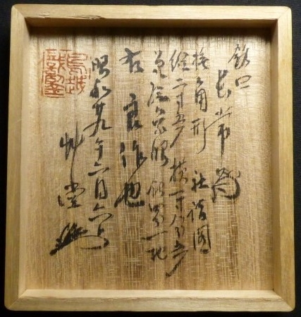 Hakogake dated Showa 39 - 1964, June 6th. It is signed with a very rare signature used by Dr. Torigoye - 'SODO' (see inside lid, left below seal). Unknown reason for using this (Pre Edo) Kao. (Haynes) |
