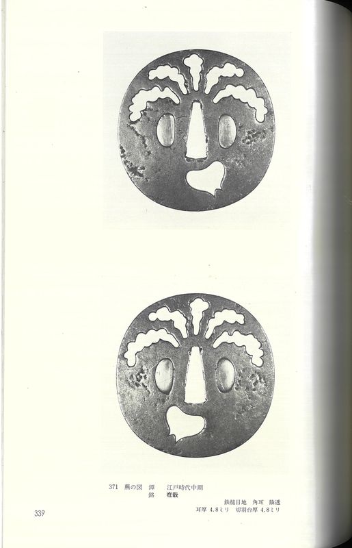 | "There were five generations of artists who signed 'ARICHIKA', H 00109.0 to H 00114.0 in Haynes Index. This tsuba is by the 1st of the family, 1661 to 1742. The work of the later generations became more and more in the Edo period Kinko style. This tsuba is by the first master in the style of the signature, which is well recorded. His teacher was Shoami Yoshihisa ( Chinkyu ) who was also the teacher of the 1st Yasuchika. There are examples signed at the age of 75 and dated 1735." (Haynes & Long) Length: 8.78cm x Width: 8.33cm x Face thickness: 0.45cm |
