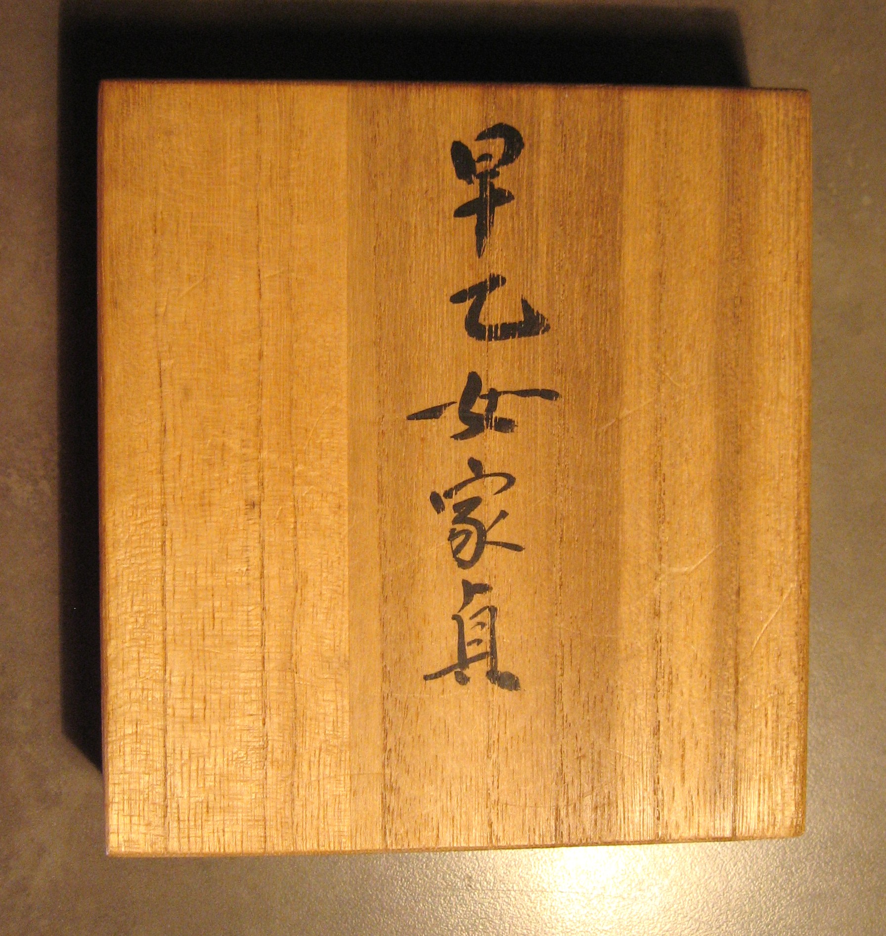 ![]() "This tsuba is contained in a box having a hako-gaki as follows: TSUBA, SIGNATURE, JOSHU JU SAOTOME IESADA, IRON PLATE, KIKU BLOOM SHAPE, MEASUREMENTS IN RIN AND BU, A TRUE WORK AS SIGNED, DATE OF SHOWA FOUR (1929), with RED SEAL AND SIGNATURE, SODO, and KAO, of a pre Edo period work. The Sodo name is very rare and seems to be one of the earliest art names used by Dr. Torigoye." (Haynes) "This tsuba was a gift to Robert Haynes from Dr. Torigoye about fifty years ago." (Long) |